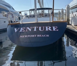 Venture, built by Admiralty Yachts, is a 75’ sailboat perfect for long range cruising. She has lived in Newport her entire life, passing through 3 owners before being donated to Orange Coast College. She boasts a spacious interior, a full beam aft master stateroom, a dedicated navigation station, and much more.